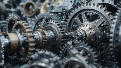 Intricate Arrangement of Metallic Gears and Cogs Showcasing Mechanical Engineering Details