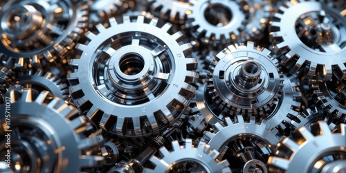 Intricate arrangement of metallic gears showcasing engineering precision in a workshop setting
