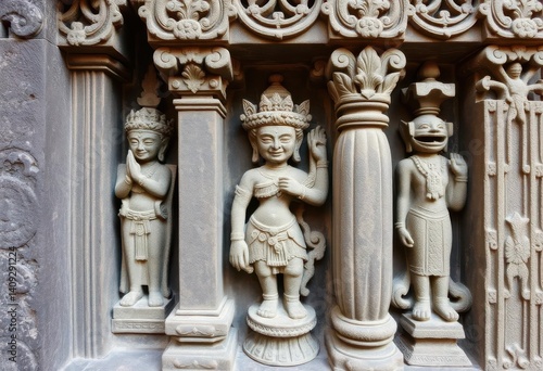 Intricate Balinese stone carving, Ubud, Bali Ancient detail, weathered texture, architecture, religious
