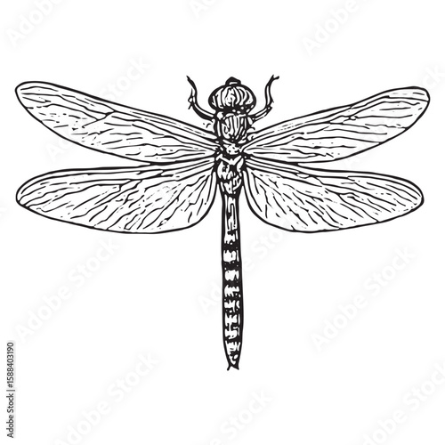 Intricate Black and White Dragonfly Line Art for Design and Nature Illustration