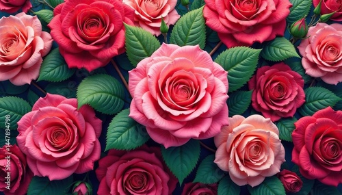 Intricate blooming rose pattern, repeating seamlessly , red, repeat