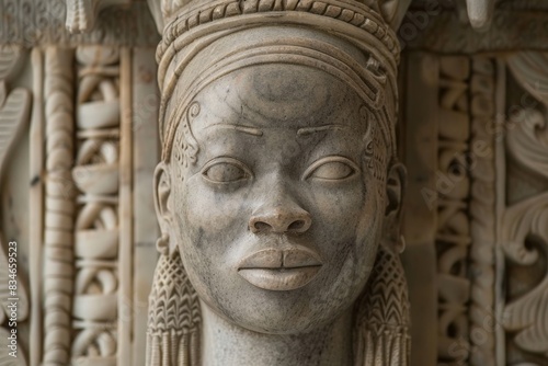 Intricate carved stone face with detailed features