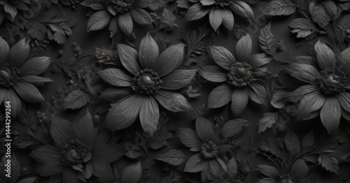Intricate charcoal floral pattern, abstract botanicals , illustration, design