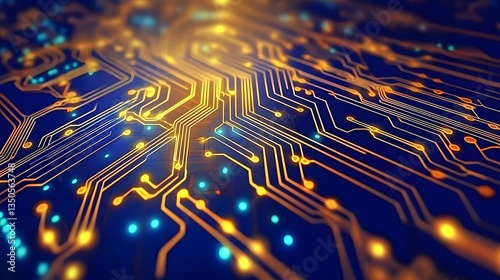 Intricate Circuit Board Design with Glowing Paths and Vivid Colors in a Futuristic Context