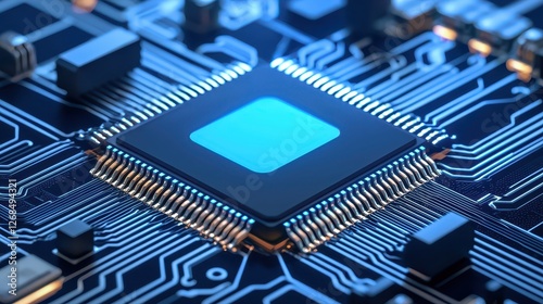 Intricate closeup, cpu chip on circuit board a glimpse into modern computing power
