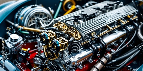 Intricate Close-Up of a Custom Race Car Engine Showcasing Unique Mechanical Design Element