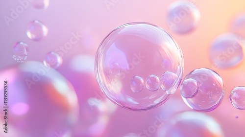 Intricate composition of iridescent bubbles forming unique shapes against soft gradient background