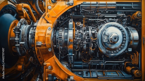 Intricate depiction of a futuristic engine system with detailed mechanical components