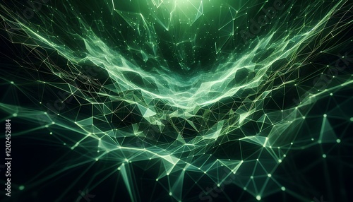 Intricate Design: 3D Green Low-Poly Triangles Inspire Imagination