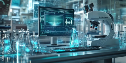 Intricate details of a digital sensor in a lab, capturing precise measurements, with data displayed on nearby monitors.