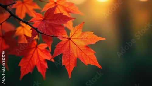 Intricate details of a maple branch laden with fiery autumn leaves , design, brown