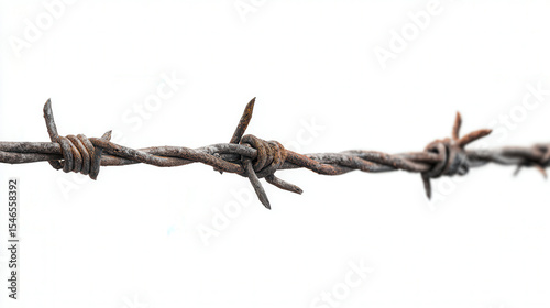 Intricate details of barbed wire fence against bright white backdrop highlighting texture and contrast in a striking minimalistic composition