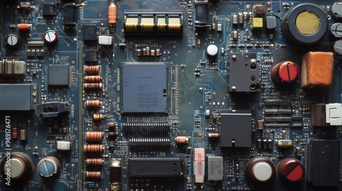 Intricate details of circuit board showcase electronic components and their connectivity features