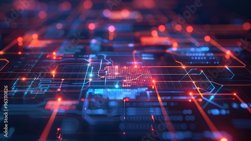 Intricate Digital Circuit Board with Futuristic Glowing Interconnections and Technology Abstract
