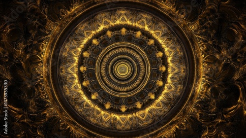 Intricate Golden Mandala Design with Detailed Patterns and Symmetrical Shapes