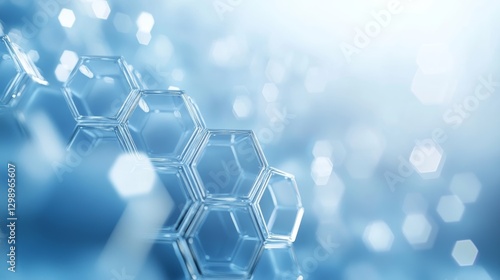 Intricate hexagonal patterns reflecting light in a blue abstract background