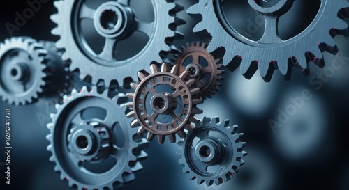 Intricate interlocking metal gears in close up detail