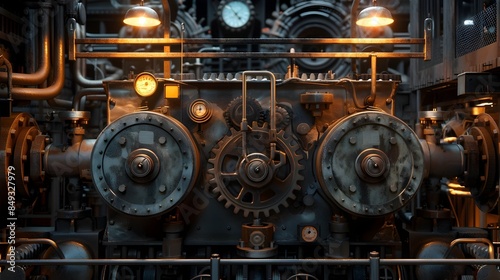 Intricate Machinery Dance of Gears Pistons and Pressure Gauges in an Industrial Facility