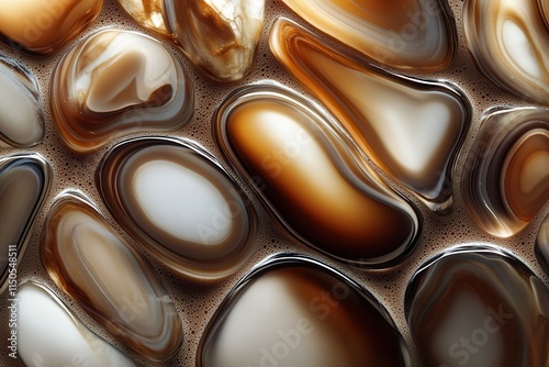 Intricate macro view of glossy agate stones with earthy tones for texture and background design.