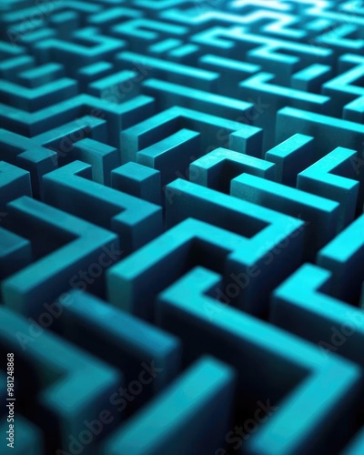 Intricate maze structure with vibrant blue tones, perfect for illustrating complexity and challenge in design.