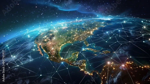 Intricate network connects across the globe, like a spider's web reaching every corner of Earth.