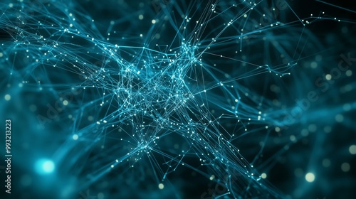 Intricate network of glowing blue lines interconnected with bright nodes in a digital space