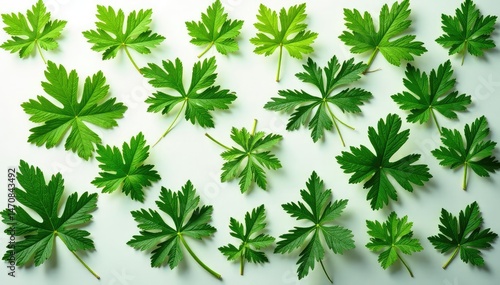 Intricate parsley sprigs forming a repeating design , element, herb, detail