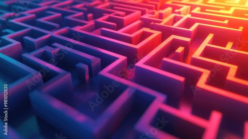 Intricate pathway concept featuring a complex labyrinth or maze representing a challenging game or direction with geometric patterns in a vibrant 3D illustration