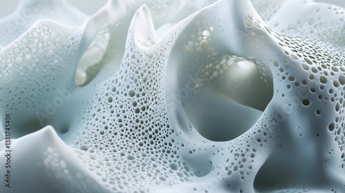 Intricate porous texture formation, abstract design with ethereal smoothness and cavities