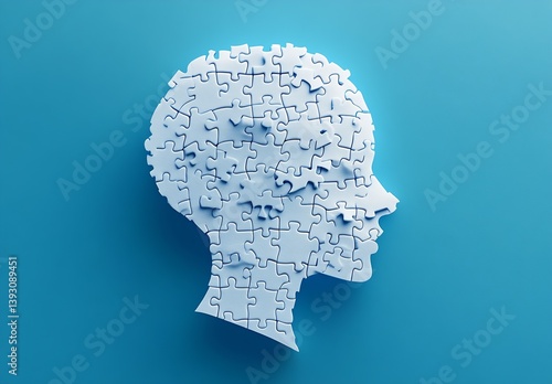 Intricate puzzle piece head silhouette representing creativity and thought : Generative AI