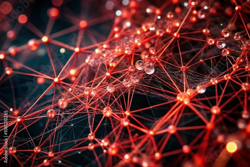 Intricate Red Fibers in Bokeh: A Closeup of a Web-Like Network Against a Dark Background