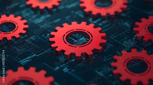 Intricate Red Gears Intertwined with Digital Circuitry Showcasing Cutting-Edge Financial Metrics. Cost of Capital, Capital Structure, Growth Concept