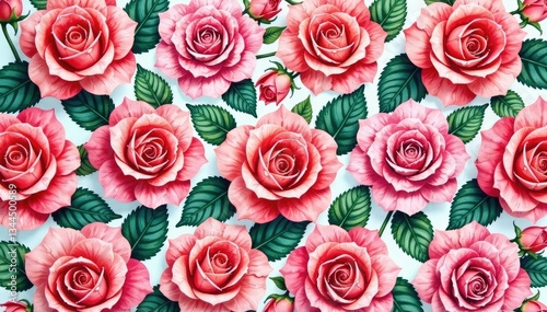 Intricate repeating rose motif, lush watercolor effect , seamless, botanical