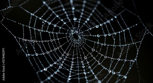 Intricate Spiderweb Detailed with Dew Drops, Capturing Nature's Fine Artistry and the Delicate Balance of the Ecosystem