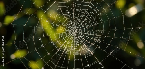 Intricate spiderweb, glistening with morning dew, sunlight highlights delicate strands, spiderweb, clear