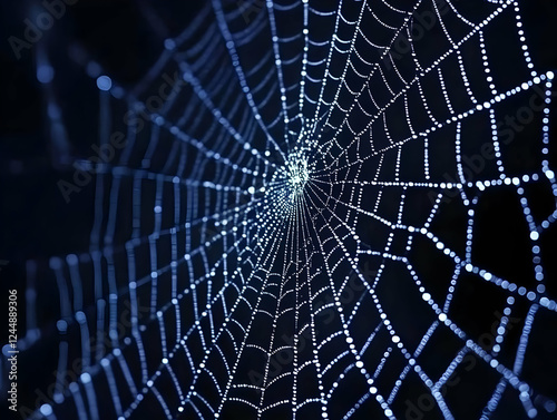 Intricate Spiderweb Glistens with Dewdrops in the Dark of Night