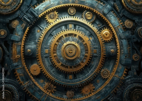Intricate Steampunk Gears and Cogs with Chiaroscuro Effect and Radial Symmetry