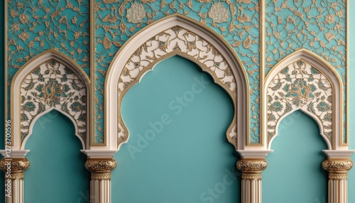 Intricate Teal and Gold Architectural Arch Design