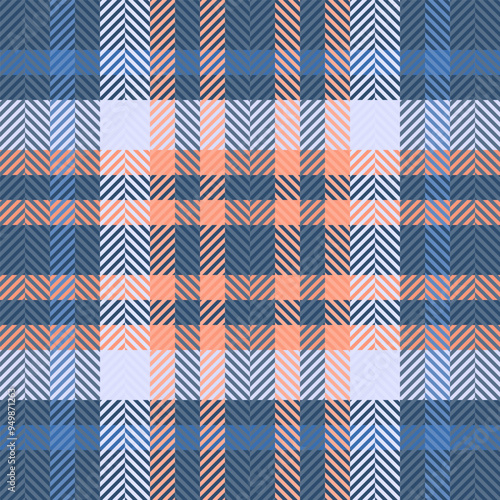 Intricate texture textile plaid, christmas tartan seamless background. Custom vector fabric check pattern in blue and red colors.