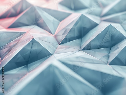 Intricate triangular shapes create a mesmerizing three-dimensional pattern with subtle blue and pink hues