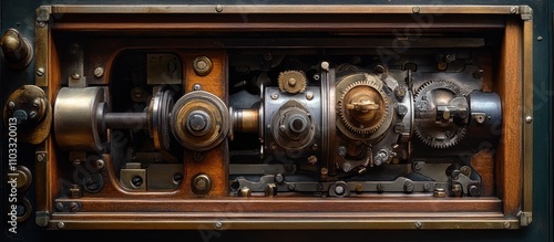 Intricate Vintage Machinery with Gears and Cogs Showcasing Industrial Engineering and Mechanical Design