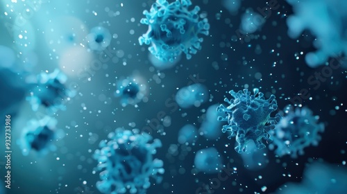 Intricate Virus Particle Backdrop, vibrant colors, textured design, abstract patterns, showcasing diverse virus shapes, ideal for scientific presentations or educational materials.