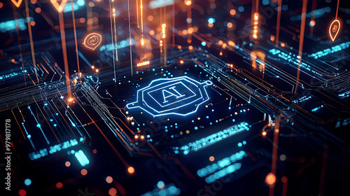 Intricate visualization of the AI Act’s governance and regulatory impositions, focusing on ethics in AI development and deployment, glowing legal symbols and structured data flows