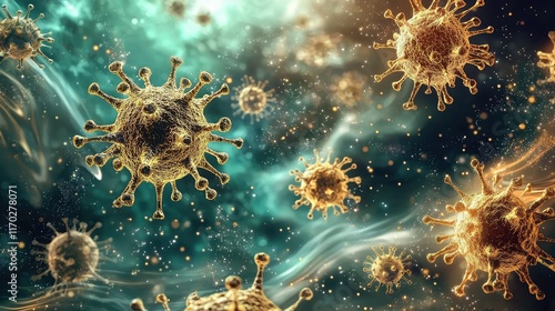Intricate Visualization of Virus Cells in Astral Background