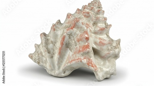 Intricate White and Orange Seashell with Unique Patterns and Textures on a Clean Background