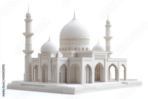 Intricate white architectural model of a historical monument with domes and minarets