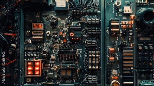 Intricate wiring setup within an electrical control cabinet, focusing on the organization and advanced components for industrial and commercial use