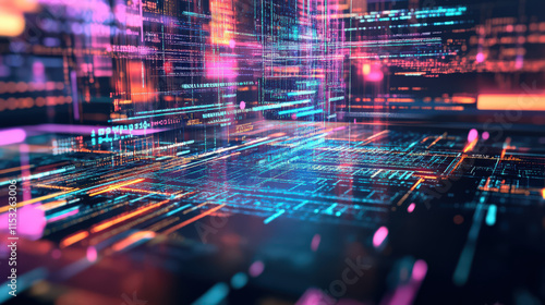 Intriguing abstract coding vibrant digital landscape. mesmerizing flow of data energetic and innovative