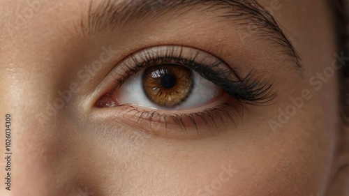 Intriguing Gaze: Close-up of a hazel eye with defined eyeliner, capturing a moment of quiet contemplation.