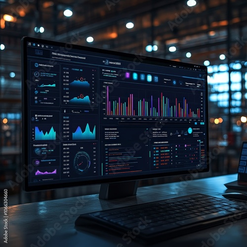 inventory management, stock optimization, AI-driven analysis, predictive analytics, vibrant display, organized layout, futuristic aesthetic, sleek and polished